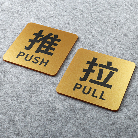 Acrílico Sliding Door Label Sticker,Push & Pull Sinais, UV Impresso, Adesão Firme, 10x100 cm/5x11cm,Bronze Dourado/Prata, Fácil de Instalar